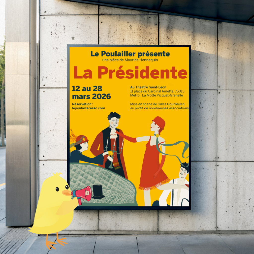 Du 12 au 28 mars 2026, au Théâtre Saint-Léon (Paris 15ᵉ), la troupe Le Poulailler vous donne rendez-vous pour découvrir la comédie « La Présidente » de Maurice Hennequin et Pierre Veber. Rires garantis Nous serons présents le 15 mars à 15h et le 26 mars à 20h pour partager ce moment avec vous ! […]