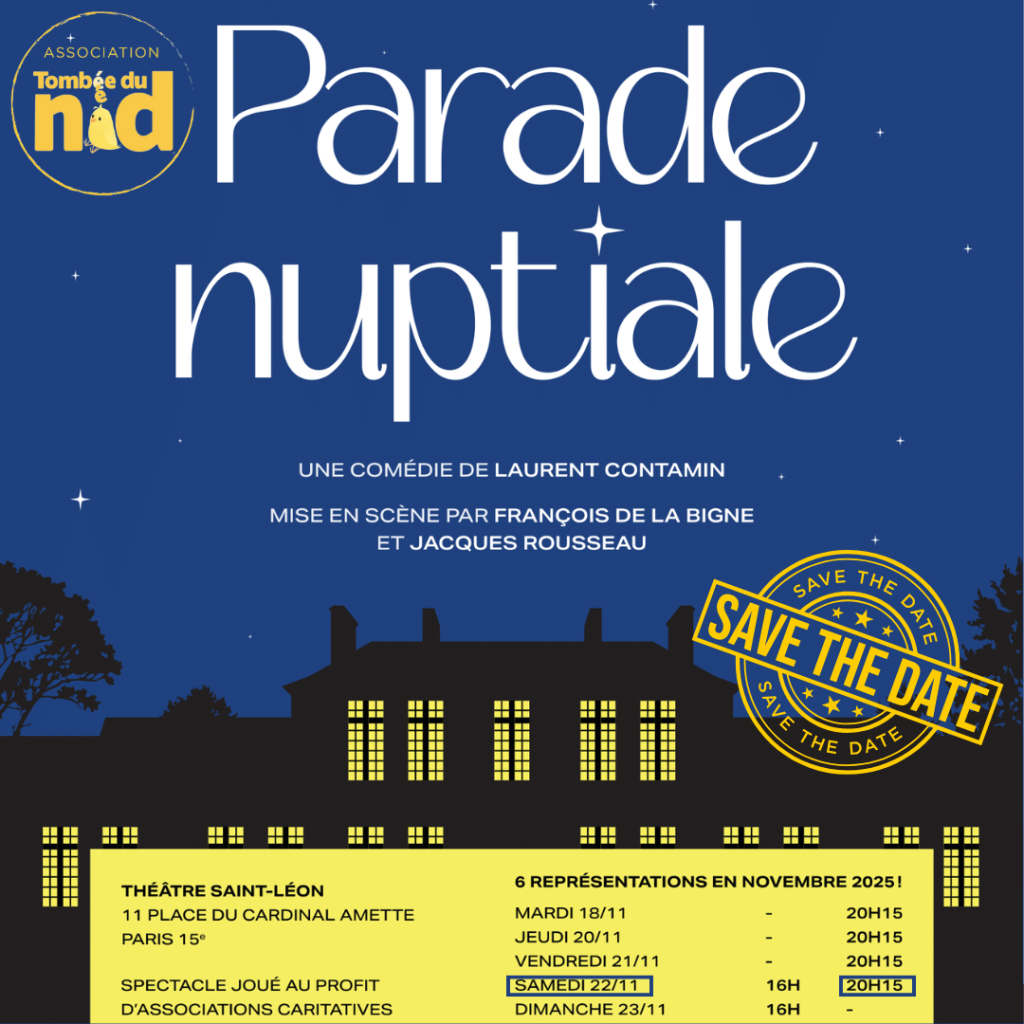 L’an dernier déjà, la troupe La Comédie du Pamplemousse avait offert un magnifique moment de rires et d’émotions au profit de Tombée du Nid 🐥Cette année encore, ils renouvellent leur belle générosité avec leur nouvelle pièce :✨ « Parade Nuptiale » de Laurent Contamin 👰🤵 Une pièce pleine d’humour et de tendresse, portée par des […]